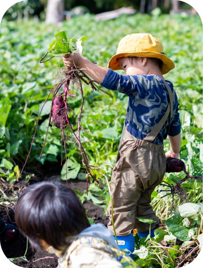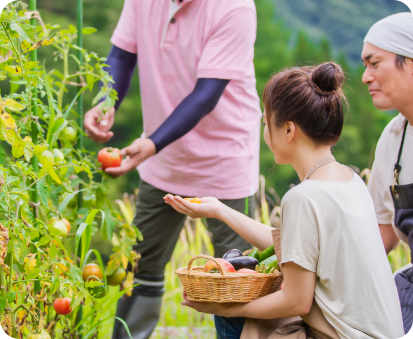 自然の恵みを肌で感じながら、収穫した野菜は家庭料理にぴったり。